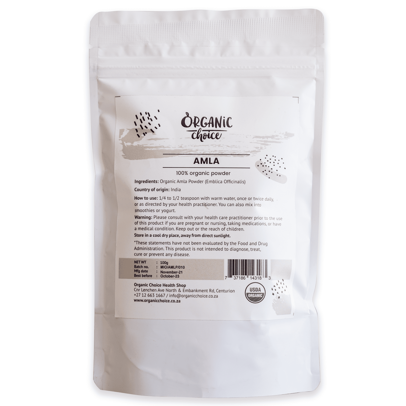 Ingredients: Amla fruit Powder (Emblica Officinalis)