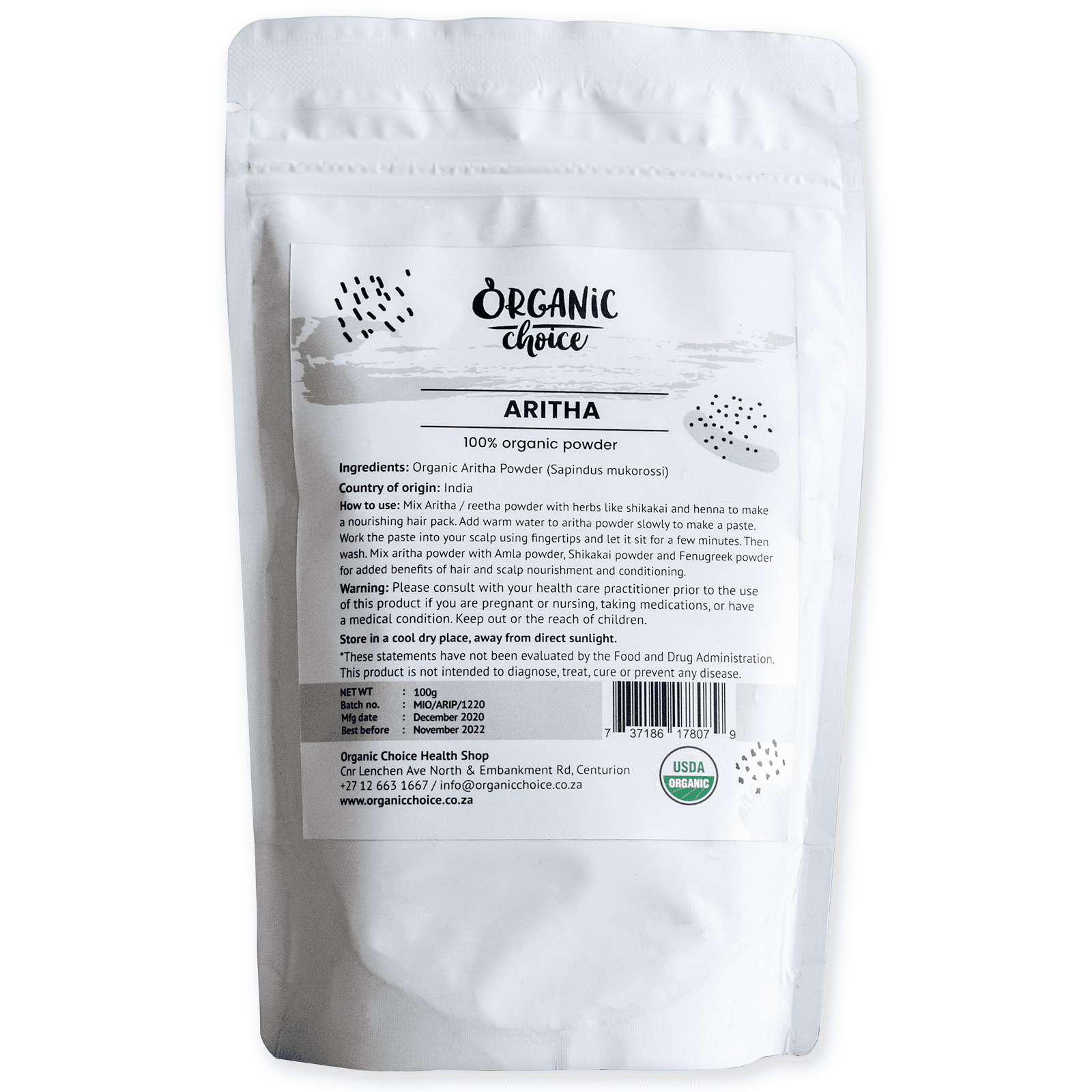 Organic Choice Aritha Powder is 100% pure, free of preservatives and any additives.