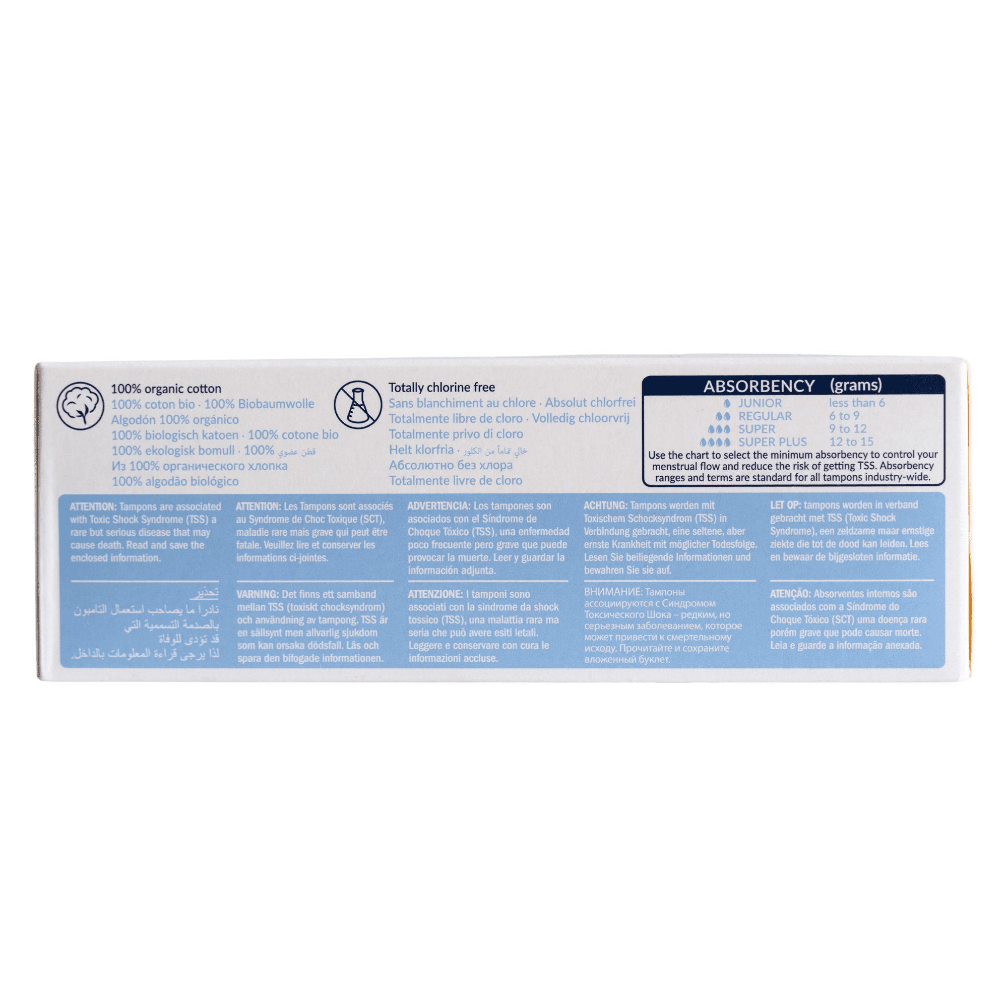 GOTS certified organic cotton tampons with regular absorbency. Made with a rolled wadding of long-fibre organic cotton – designed to gently absorb menstrual flow and expand widthways.